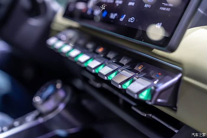 我觉得最让户外越野者喜欢的还是配备了6个飞航拨杆按钮,可以自己根据自己的需求DIY自己车辆,原车就已经预留了电源接口,方便自定义改装,左边5个是低压电源,右边1个是高压电源,既能照明、电台通讯,又可绞盘,方便日常越野所需。