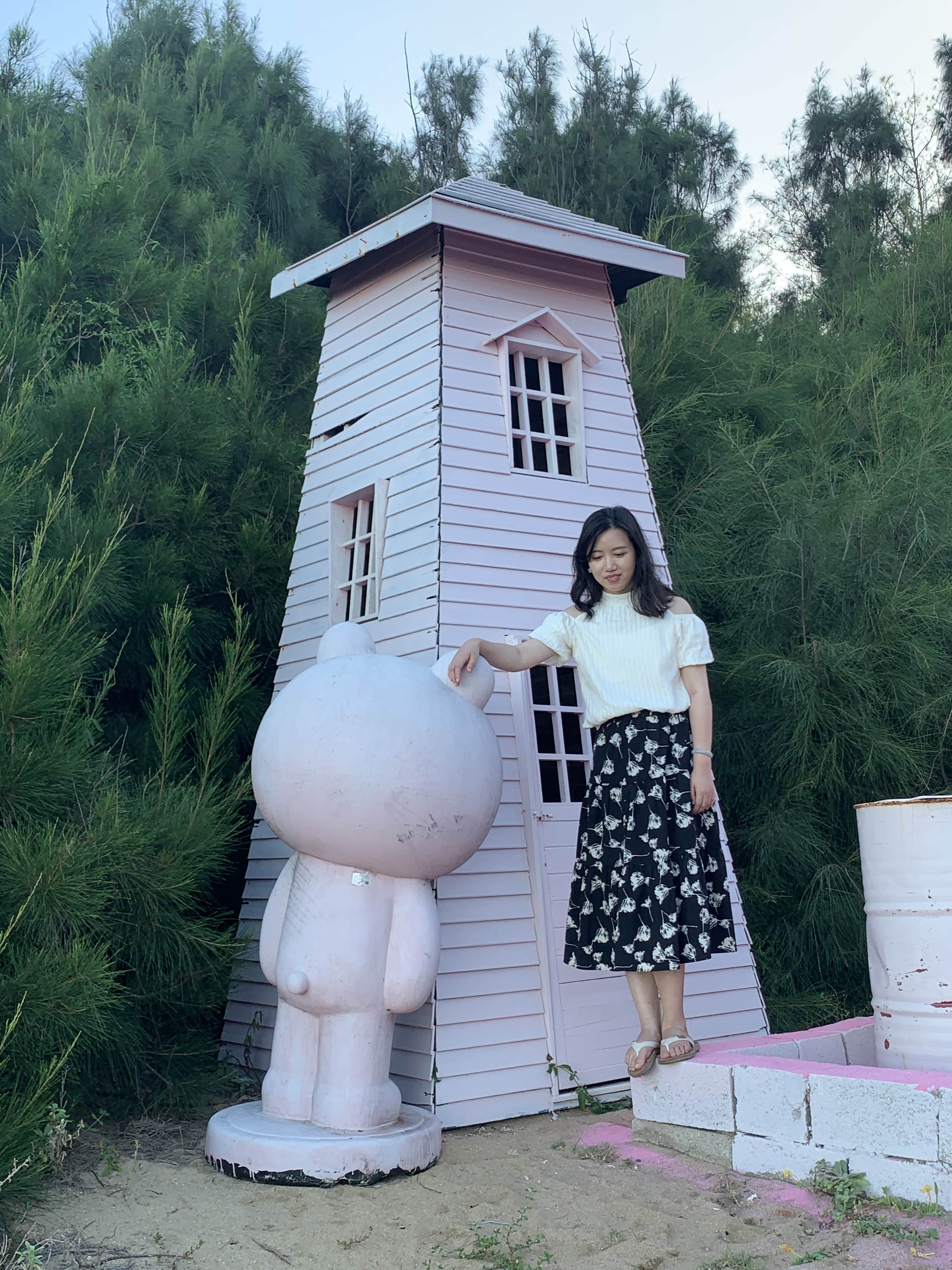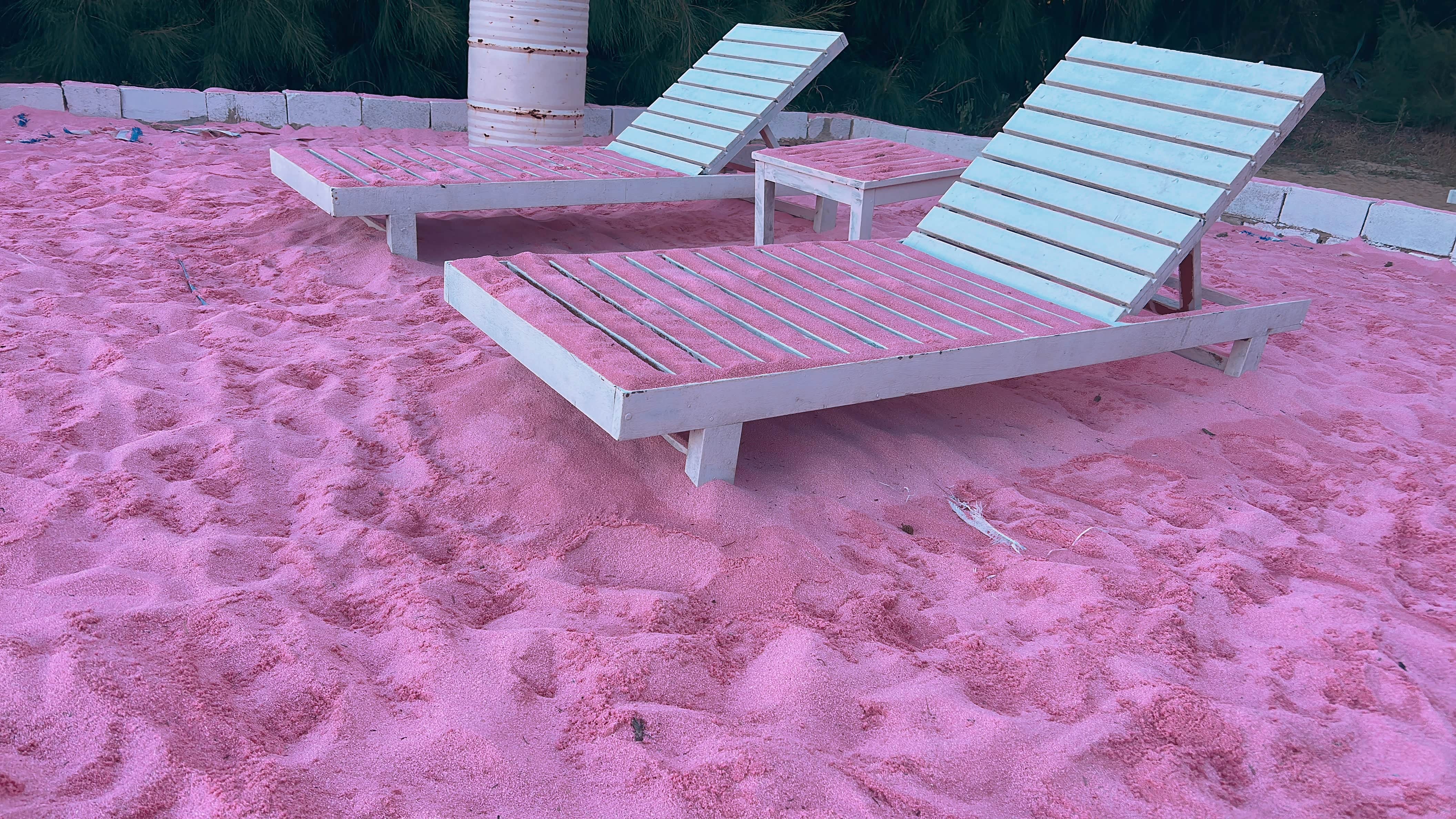 粉色的沙滩如梦似幻,踩在上面,细腻的沙粒仿佛带着温柔的触感,搭配上白色的躺椅,宛如置身于童话世界。还有那造型可爱的粉色小木屋,旁边立着萌萌的卡通雕塑,让整个画面都充满了童趣。我在这些美景前不停变换着姿势,想要把这份美好永远定格在照片里。站在观景台,眺望远处辽阔的大海,海水在阳光的照耀下波光粼粼,与蓝天相接,那种开阔的感觉,让我的心情也变得格外舒畅。