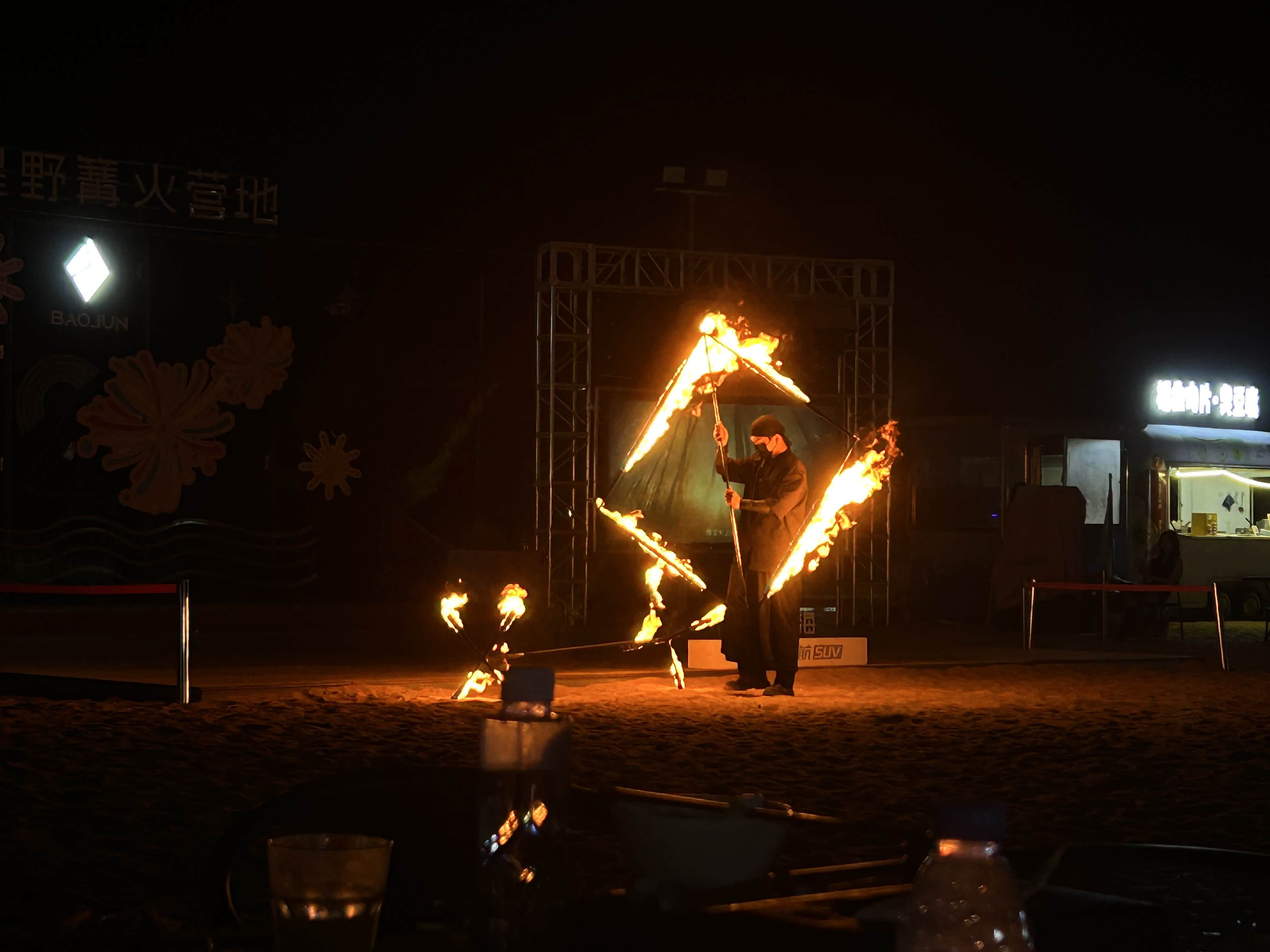 火焰表演结束后,烧烤活动紧接着开始了。烤架上摆满了各种食材,有鲜嫩的羊肉串、鸡翅,还有各类蔬菜。大家分工合作,有的负责翻转食材,有的负责添加调料,不一会儿,空气中就弥漫开诱人的香气。我拿着刚烤好的羊肉串,咬上一口,肉质鲜嫩,香味在口腔中弥漫开来,那是属于美食的幸福味道。大家围坐在一起,一边享用着美味的烧烤,一边分享着白天的见闻和趣事,欢声笑语回荡在夜空,那一刻,感觉所有的疲惫都烟消云散了,只剩下相聚的快乐与温暖。