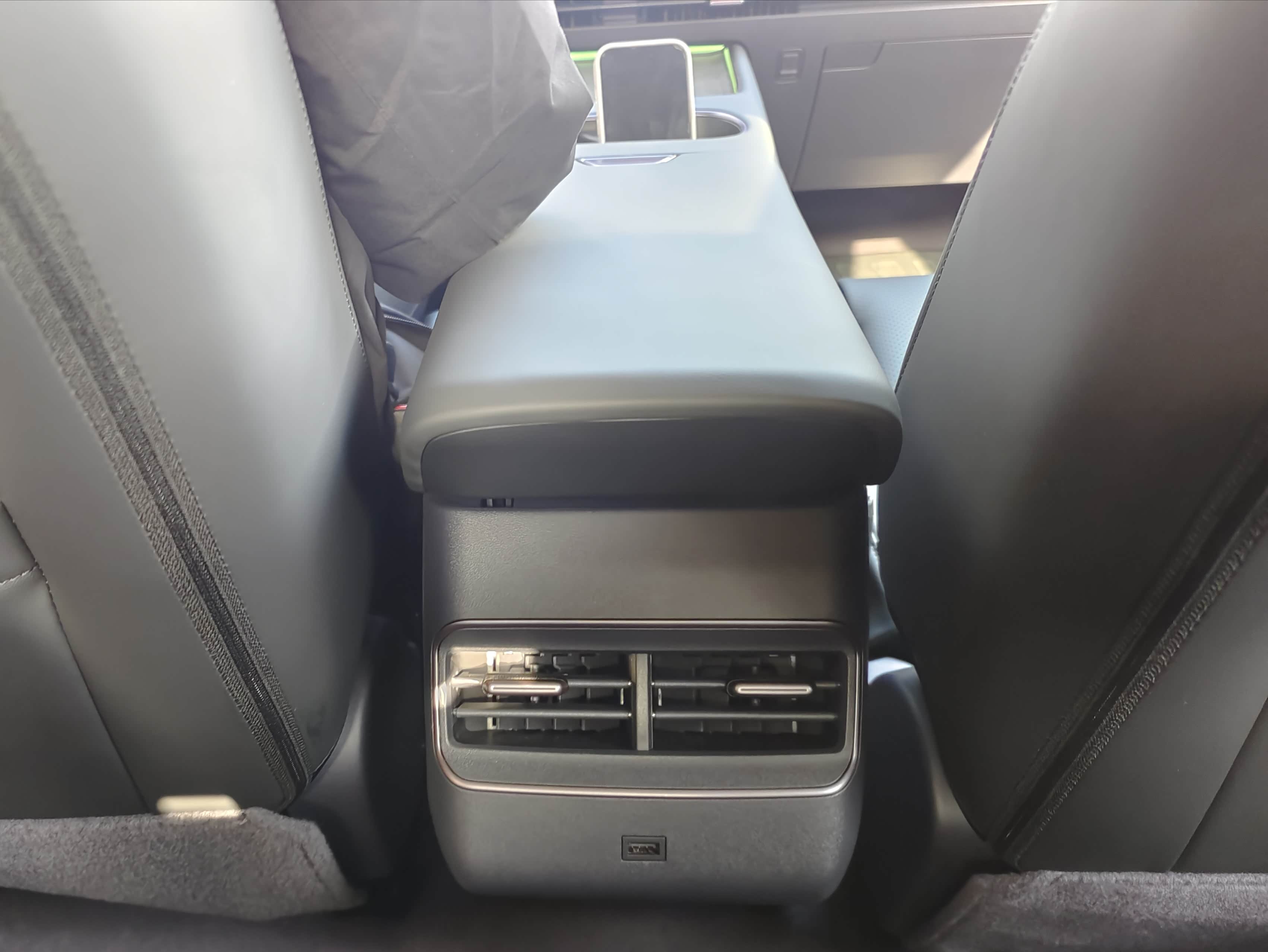 试驾车是深色内饰。后排出风口简简单单,无独立调节功能。