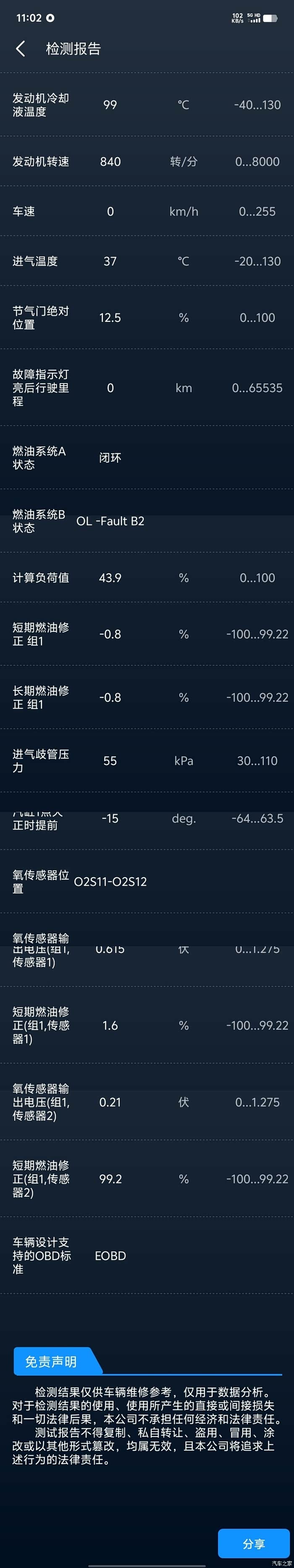 第二就是发动机负荷过大,这个主要还是车辆混合气有问题,这个和刚才的进气压力数据偏高是有直接关联的。