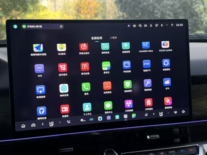 路上还是堵,孩子坐不住,拿我手机玩了一会儿,眼看电量不多,我就让她把手机放前排无线充电板上充着。顺手从中控大屏里找了个节目给她看,屏幕够大,操作也流畅。孩子盯着屏幕,安安静静的,我们也省心不少。