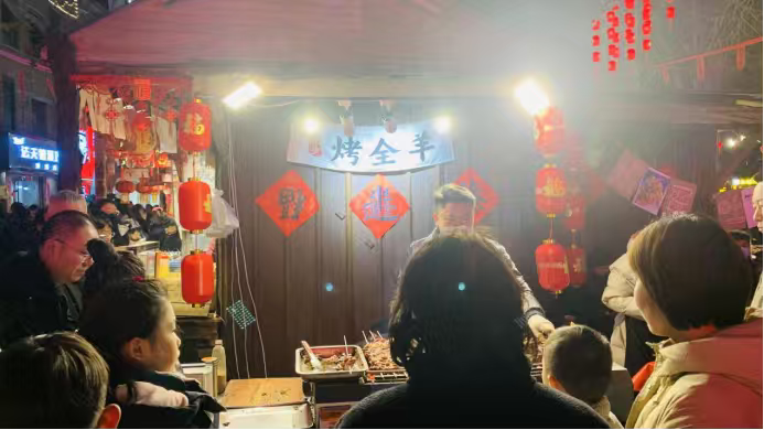 到了民俗园,人真不少,找车位花了点时间。好在有360全景影像和透明底盘,窄路和车位线看得清楚,停进去不算费劲。园区里挺热闹,我们跟着人流走走看看,买点小吃,拍拍照,时间过得挺快,不一会天就黑了。