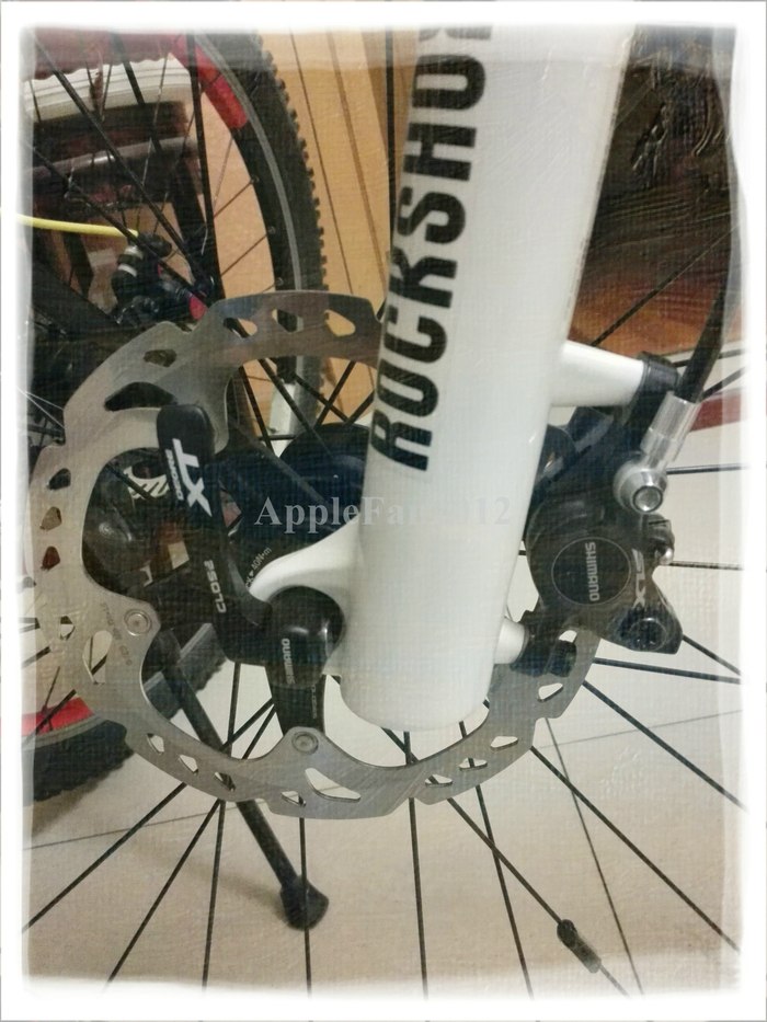 变速套件、刹车。对于XT套件,我心想经常压马路的人也发挥不出多大效果吧?而且SLX和XT的性能已经差不多了,所以直接SLX大套件。碟片用了RT-81中锁,真心漂亮,但两张碟片3张红色毛爷爷