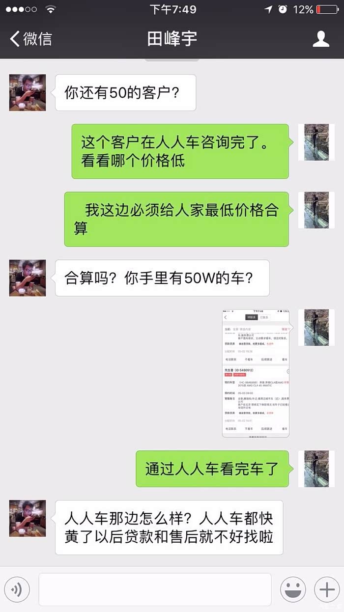 ),人人车说要多加钱,所以没办法,我又找其他网站,发现瓜子网站也挂着这个车,电话问销售,他说他们能做,而且各方面价格还便宜,他还特意发了这个截图给我,意思是竞争对手要黄了(其实我应该一开始就注意,这种损人利己的人人品肯定是有问题的),我赶紧从他们家买!