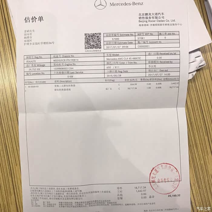 事情是这样,在4月时候我想换了AMG,就一直在二手车网站找车,后来在人人车网站上终于看到我中意的cla45,经过一阵联系还价,当即决定买,但是后来因为我要上湖南的牌照(北京指标不够了
