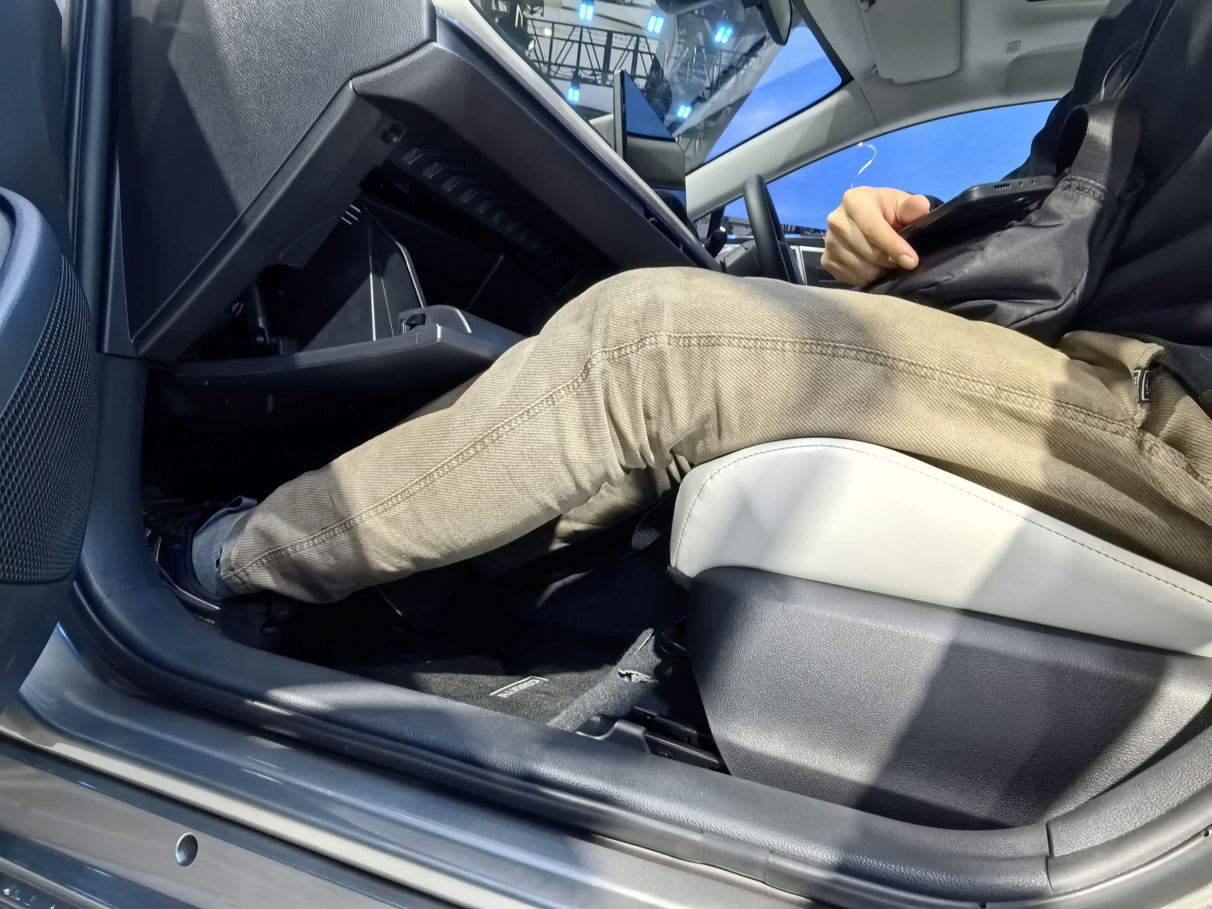 ①我将前排主驾座椅调到最低后,头部空间有4指距离,腿部空间并没有太多问题,只是车门框顶部设计的偏低,出去需要有较明显的弯头动作,不够方便。
