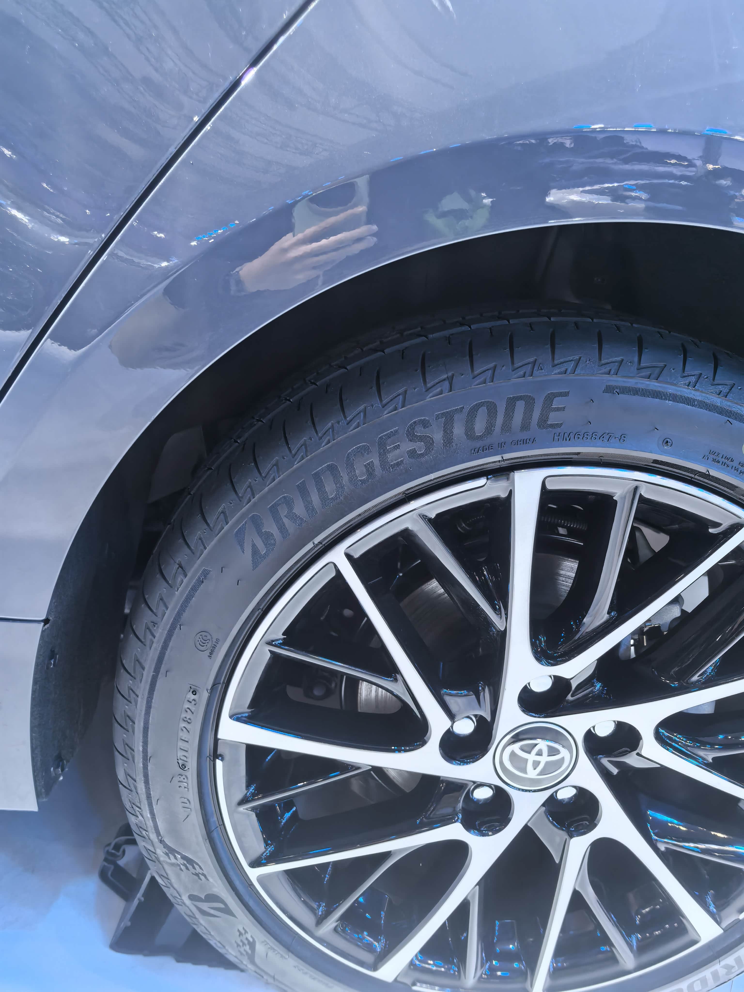 ②轮胎是普利司通的,轮胎与底盘间隙是3指距离,底盘不算特别高,因为我从车内出来直接脚就碰到地面了。