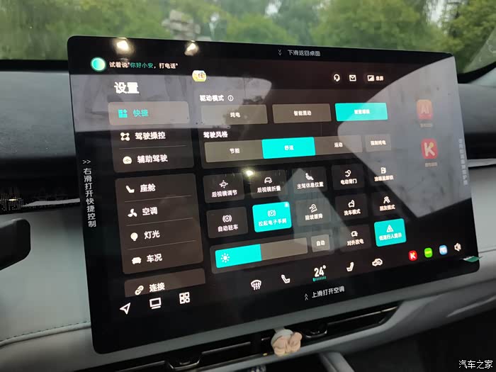 让我们再来看一下这款车的空间吧,空间的布局我感觉也是非常的简单,尤其是我选择的这款内饰也是非常的上档次的,然而这款车的配置也是非常不错的当然配备了14.6寸的大屏幕也是我的最爱!还有就是很多的功能在屏幕里面也都操作更加的便捷闲着没事儿的时候,中午还可以躺在车上休息,打开天窗,呼吸一下秋天更加新鲜的空气,还可以在大屏幕里面看电影,真的是非常不错的当然这款车的主驾驶的电动座椅调节也是更加的方便,轻轻的拨动一下,可以调前后,可以调高低其实这款车的全景天窗也是非常上档次的尤其是在这个季节打开天窗开车这种感觉真的是非常好的,也让我们对于车辆有着更高的追求,尤其是春暖花开的时候,遇到更美的景色,我们还可以通过全景天窗欣赏到!当然当我们坐在后排的时候也可以敲二郎腿,后排的地板是平的,这也是我非常满意的地方,很多合资车这个地方真的是凸起的很高让我们坐在中间的时候也是非常的难受!其实现在家家户户的生活水平平都变得越来越高,家家户户也都拥有着属于自己的代步车,拥有了一辆新能源的uniz也让我们在驾驶中寻找到了更多的乐趣,然而这款车真的是一款非常智能的车型,让我们开着这款车也是更加的放心,对于续航里程也不会有焦虑!