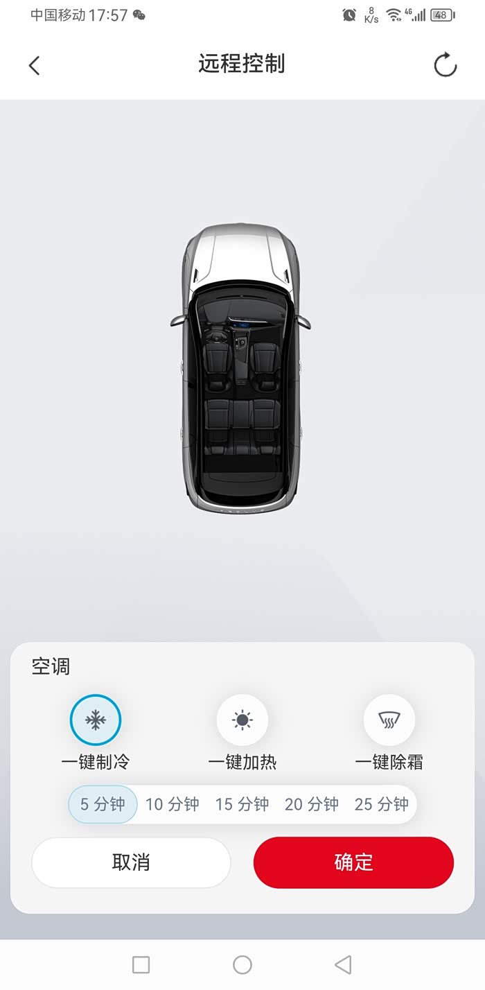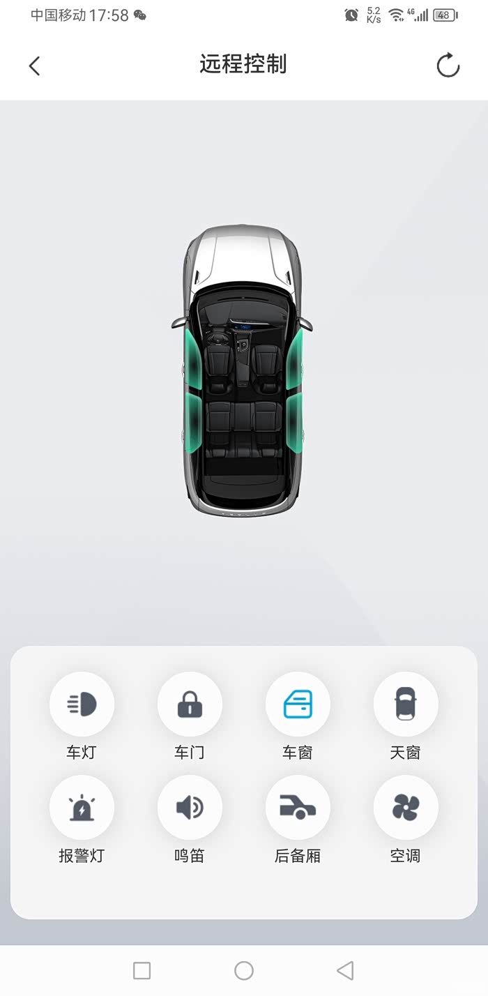 一上车觉得热,想要凉快些,直接就是那个A/C、内循环就全部搞起来了。夏天车子经过暴晒之后,车内空气温度是很高的。那如果一上车你就打开A/C、内循环,车内闷热的空气它就换不出去;而且仅仅依靠A/C制冷的量也很难快速把这个温度降下来;相对合理的方法是先把车窗都降下来,空调风开到最大,外循环打开,把车内的空气先给它排掉。等温度降得和车外差不多了,窗户一关打开A/C或内循环来制冷。我的爱车就有远程控制功能可以提前在手机上远程控制来实现,非常的方便。
