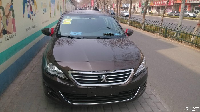 其余的就不说了,什么科鲁兹、英朗三厢、301、308、朗动、K3都看了但都没有看中....直到新408的上市,其实对于408我之前也有过了解,周围有四个同事都入手了老408,空间很大,只是外表我是实在不感兴趣。。。。。。尤其屁股,翘起来的很难看,虽然比307好看多了,但是还是一眼就能看出来不协调,还有我超级不喜欢中控的空调圆形出风口,后来了解到新408要上市了,新款车型有了很大的变化,全系标配6气囊、标配ESP、第三代爱信6速手自一体变速器。。。等等,尤其中控的大屏很惹人喜欢,简洁而不失美观。我们这的标志4s店离我家比较远,当时钱也不大够,后来一直拖到过年才去试驾,到了4S店一看就看中了,试驾车是1.6T的,动力输出很强劲,配置也很高,无钥匙进入、无钥匙启动**利器,哈哈。后来就谈价钱了,4s咬定最多7000,死活不降,后来销售告诉我3.15号潍坊有个厂家团购,叫我去参加,说到时候可能优惠大,于是等到3.15号去了潍坊,等了半天放出价格一看,我擦,木有1.8L自豪的价格,我靠,这不是忽悠我么,赶紧去找销售问,结果他说要问领导,他也一头雾水。。。。。。等了半天他回来告诉我,1.8自豪优惠1W,送车膜、发动机护板、全包围脚垫、挡泥板、后备箱垫。我犹豫了犹豫,一咬牙定了....谁叫我喜欢小8呢,最后加了2千加装导航,主要是想要倒车影像,毕竟是纯新手么...