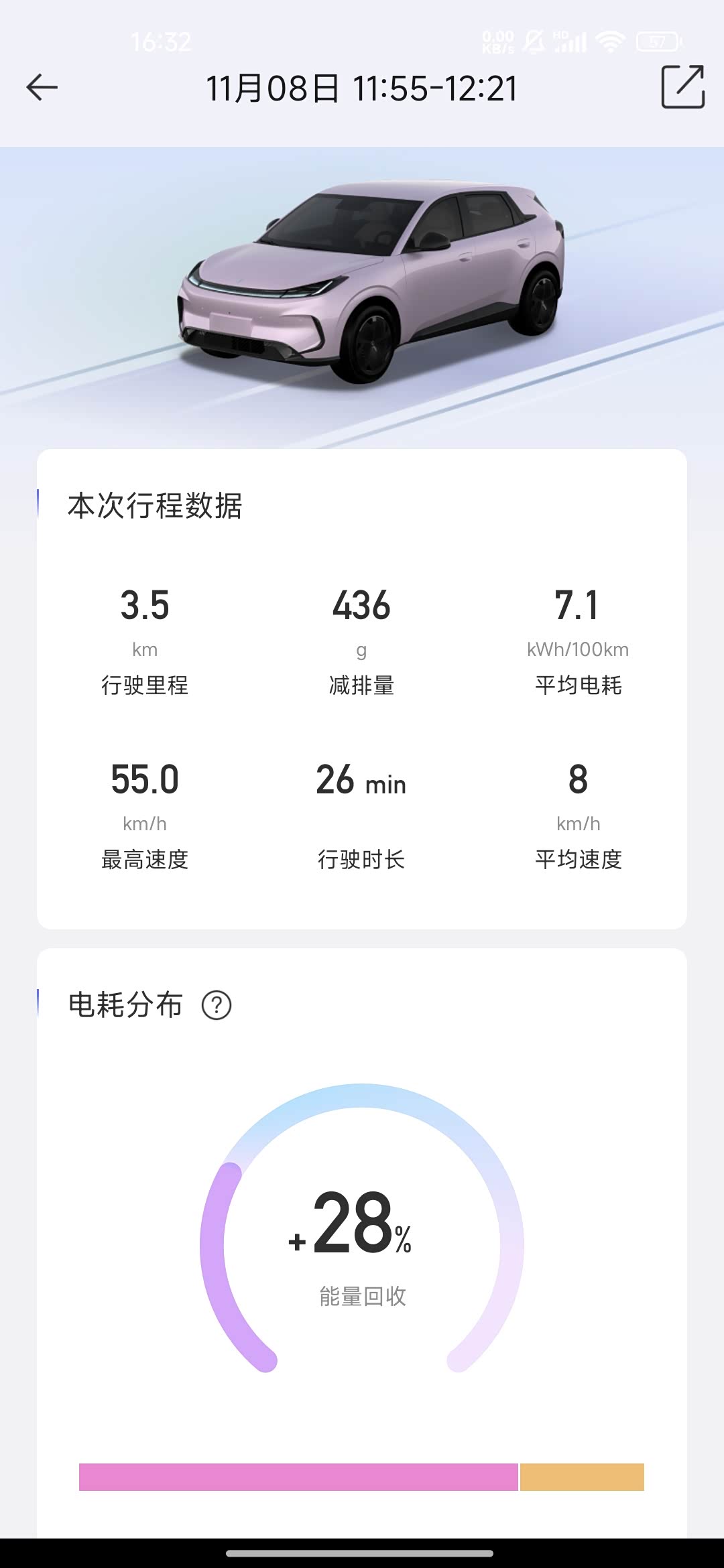 这一个多月,T1的续航能力太硬核,行驶里程近700公里,高速和市区综合路况下,电耗均值11.5,甚至还跑出了7.1的电耗(附有照片为证),我的建议是平时市区代步调到舒适模式,跑高速时调到节能模式,时速控制在100公里/小时左右,不但节能而且安全。