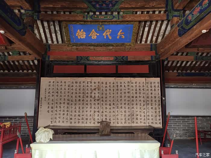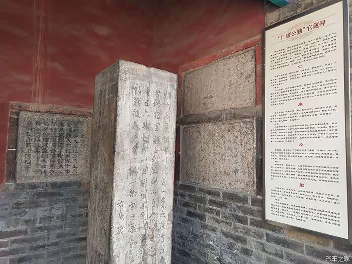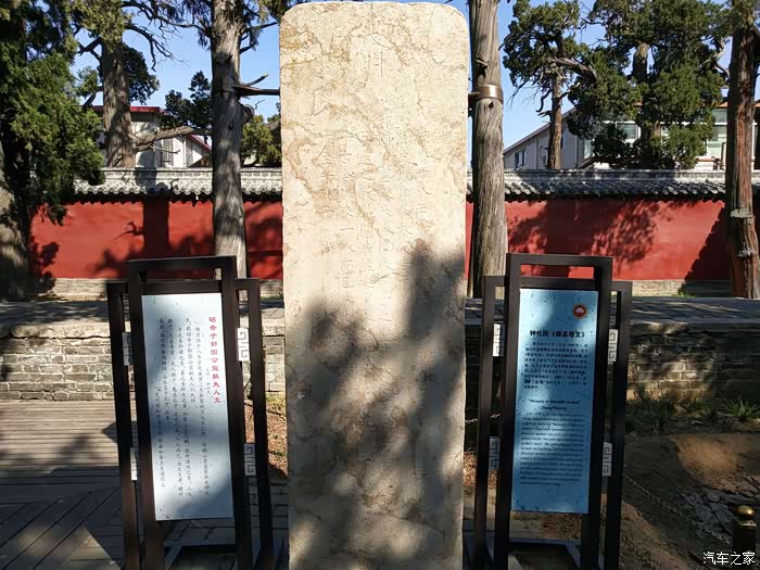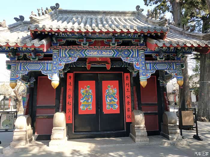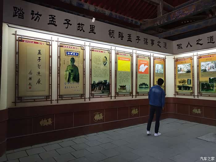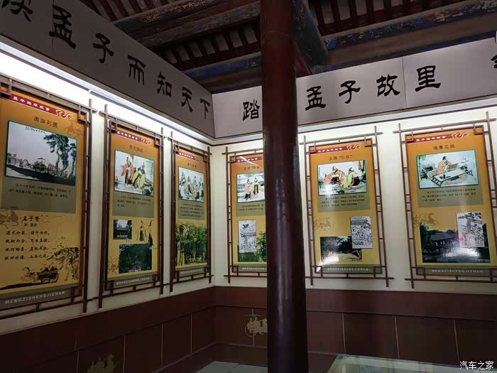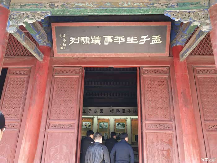 孟庙,正南门为"棂星门"。门内左右各一坊,左名"继往圣",右名"开来学"。第一进院落的北壁正中为"亚圣庙石坊"。第二进院落的砖铺甬道两侧尽是古老的苍松翠柏,往北为"泰山气象门"。进入此门后,即为第三进院落。此院左右各有门通往庙外,左名"知言门",右名"养气门",是过去出于孟庙的主要通道。"养气门"外南侧建有"亚圣木坊";门内南侧建有"祭器库"三楹。"知言门"内南侧建有"省牲所"三楹,此院北壁,三门并列。正中之门为"承圣门",门之左侧建有"康熙御碑亭";左为"启贤门";右为"致敬门"。"承圣门"内第4进院落即分为东、西、中三路。中为孟庙主体建筑"亚圣殿",其后为"寝殿",其前左右两侧建有"东庑"和"西庑"各七楹,院中有"天震井"和"乾隆御碑亭"。东路"启贤门"内为"启圣殿",其后为"孟母殿"。从"启贤门"到"启圣殿"甬路两侧,竖立着为数众多的历代碑刻,称之为"孟庙碑林"。西路"致敬门"内为一过道小院,东垣有一小门可通往中路"亚圣殿"院,北壁有一小门为"斋戒门"。这一小院四周墙壁上镶嵌着历代名人谒孟庙题咏等数十块小型碑刻。"斋戒门"内建有"致严堂"三楹。