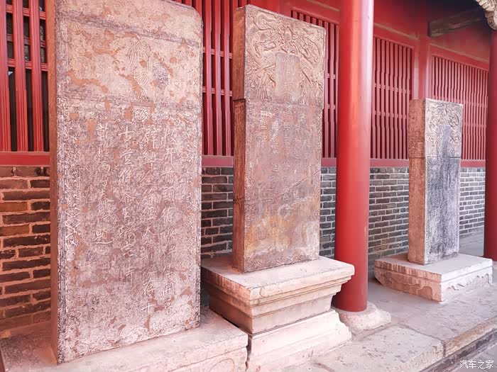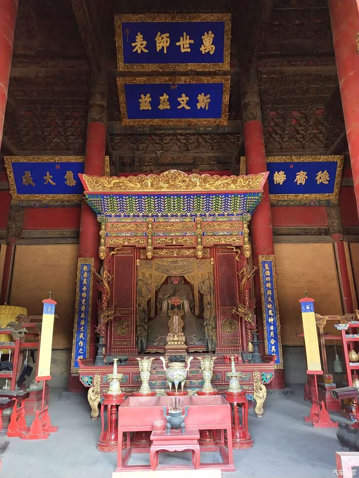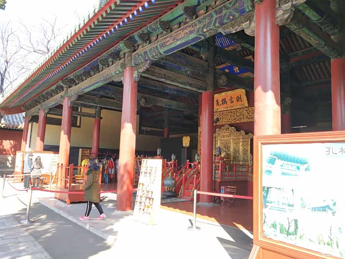 孔庙是祭祀孔子,表彰儒学的庙宇。始建于周,完成于明清时期,是世界上两千余座孔庙中最大的一座。孔 庙现占地14万平方米,三路布局,九进庭院,贯穿在一条中轴线上,左右作对称排列。整个建筑群包括五殿、一阁、一坛、两堂、17座碑亭,共466间,分别建于金、元、明、清和民国时期。主体建筑大成殿,重檐九脊,黄瓦飞甍,周绕回廊,为东方三大殿之一。汉以来的历代碑刻1040多块,连同大量书、画、牌、匾等珍贵文化遗存。