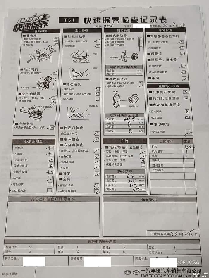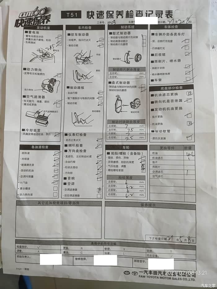 5万公里保养和检查的项目不多,所以这次保养很快就完成了。本次对4S的服务满意!第5次保养完毕!