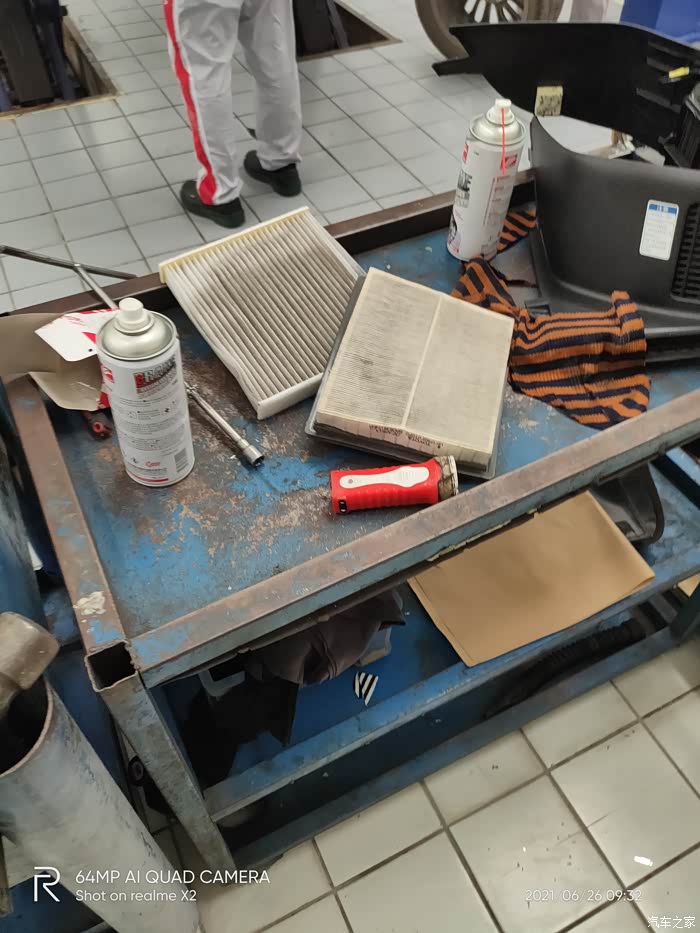 3. 师傅在检查车子的时候很仔细,空调格弄坏了给我换新。