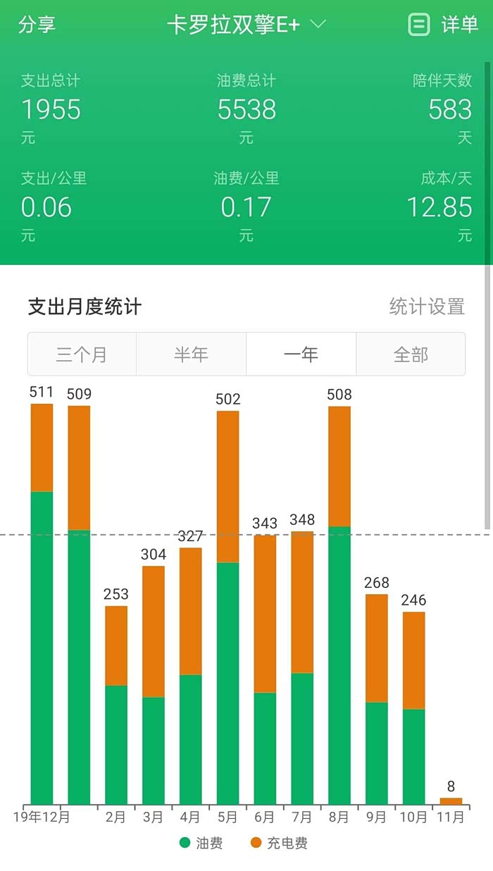 我买了已经3个月跑了3000公里,基本都是用电,为了怕发动机长时间不用容易腐蚀才用HV模式
