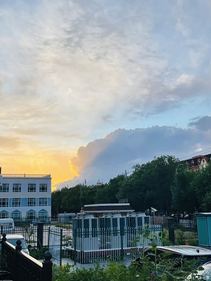 然后就继续驱车赶路,来到了布尔津县,酒店前的晚霞真的美爆了。