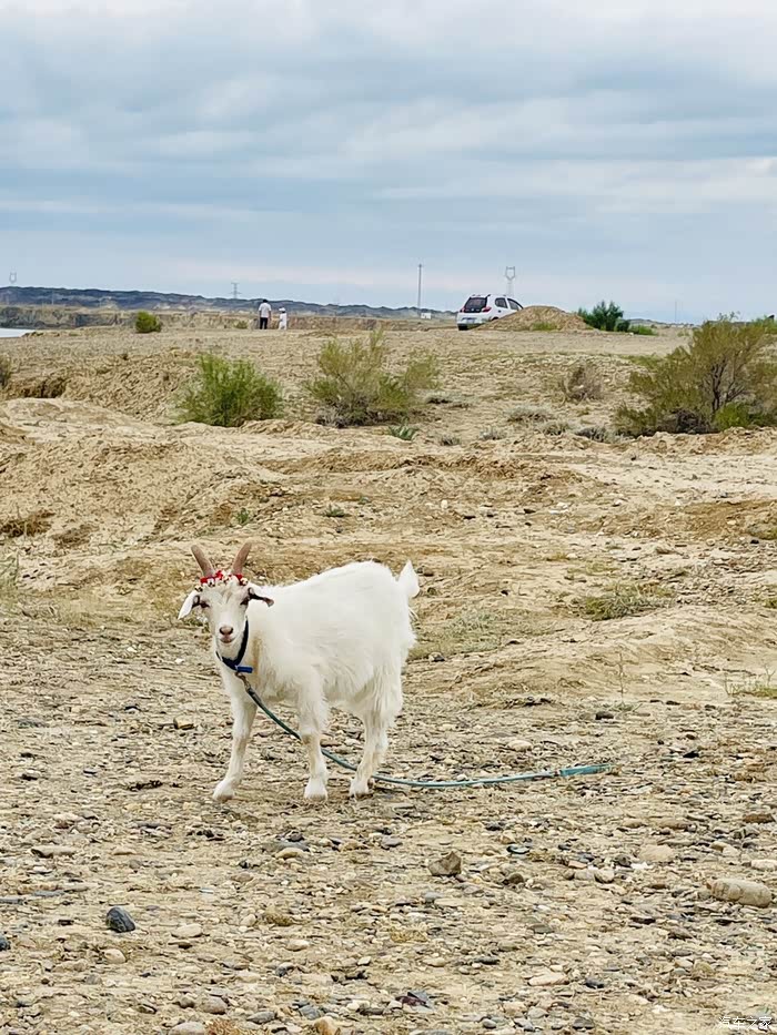 我们看见有圈起来规划好的旅游景点,但是没进去、只往前走了两公里,就有个路边的停车点,景色也很绝美!还有一只正在营业的小羊在悠闲吃草。