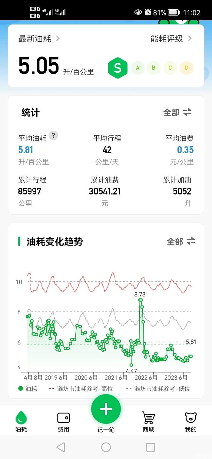 2022年9月1日购买的新车,开了一年零38天,一共跑了34567公里,总用时1007小时,平均时速34公里/小时,平均油耗6.2L/100公里,有下图为证。