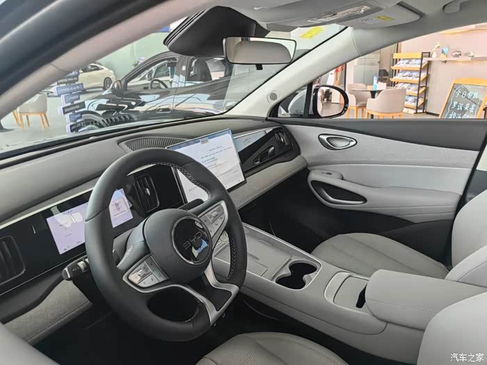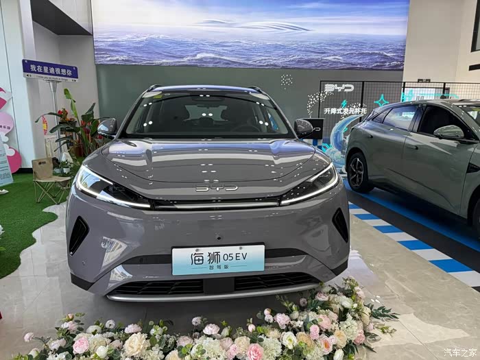 吃完午餐,我还顺便逛了逛他们的体验展厅。一进门,就被一款炫酷的新车吸引住了——那就是比亚迪的新款海狮05ev智驾版!这款车外观时尚,线条流畅,看起来就很有科技感。我坐上驾驶座,感受了一下那智能的座舱和高阶的智驾系统,简直就像是在开未来之车一样。