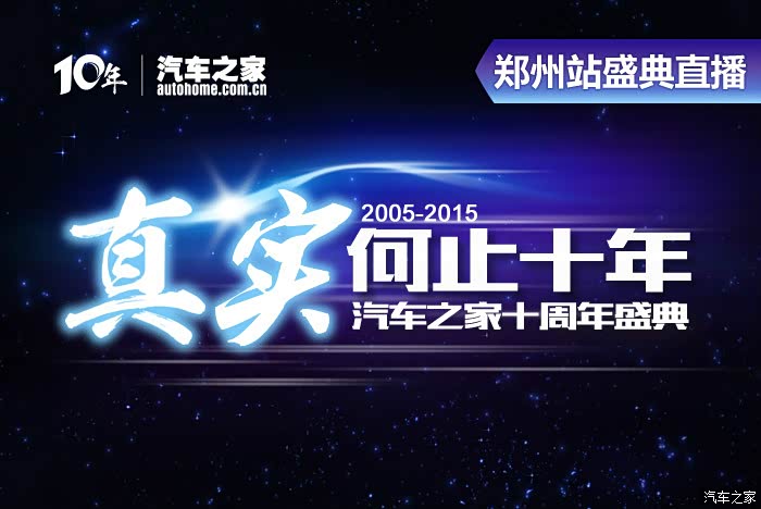 2005-2015 真实何止十年 汽车之家十周年盛典郑州站 7月25日 郑州绿地JW万豪酒店揭幕,届时我们会为您带来全程直播,参与互动更可以获得汽车之家10周年限量版纸质车标,敬请关注。