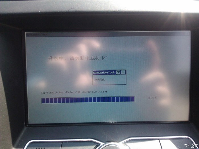 拷贝完成小窗口的‘OK’再关闭升级程序窗口,重新启动导航。