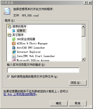 或者使用书虫2的建议方法:双击UPF_VDD.CONF 文件,在弹出的窗口中选择记事本。再点确定