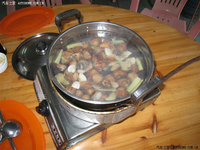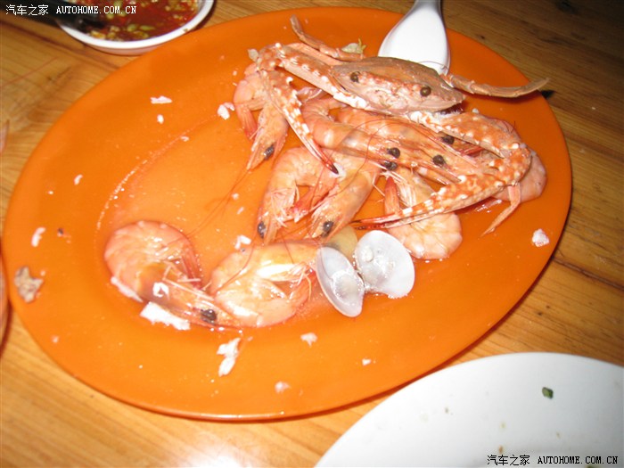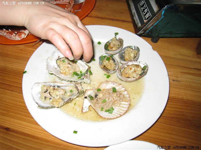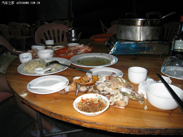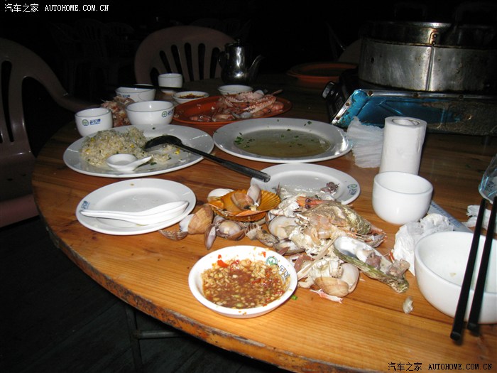 费用一定是大家关心的罗,这个按人头收费的,去年同学带着去的时候是60元/人,今年我和老婆去是90元/人。反正上的海鲜是管够你吃,一般第一次上的海鲜基本都是够吃了的,不够再和老板商量吧,具体是些什么海鲜,名字我也叫不出来,有螺、蟹、鱿鱼、带子(是蒸好后直接上的)、扇贝,虾、海鱼,嗯,基本就这些东西了。我和老婆吃得最后都在鼓撑