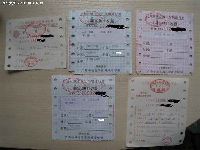 上图:因为一个人开车,实在无暇拍点路上的照片,随便上几张票据吧,抱歉啊。介绍下各路段大致的用时情况,去向收费票据集体照