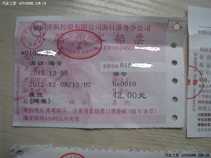 好了,高速过路费、轮渡、油料费用情况就这介绍这些吧,希望这部分对有兴趣自驾三亚的坛子里的TX能够有些帮助作用吧,好作相应的打算。另外我是没办法一个人开车,有条件的最好还是多点人换着开,毕竟疲劳驾驶很危险,我是一路多进服务区休息,一感觉犯困马上找服务区休息会再继续走。自己感觉开这种长途长时间一个姿势,其实人已经很疲倦了,只是很机械的做动作,其实已经很危险了,自己还浑然不知,一下车后两个膀子酸痛,腰也很痛,我还好的是有个买保险时送的电动按摩垫子,一路上插着点烟器不停的抖动才好点,要不真是忍受不住的。对了,出发前记得去检查车况哈。我是检查了的,结果冷暖风机还是出了点小插曲,还好不影响大局。