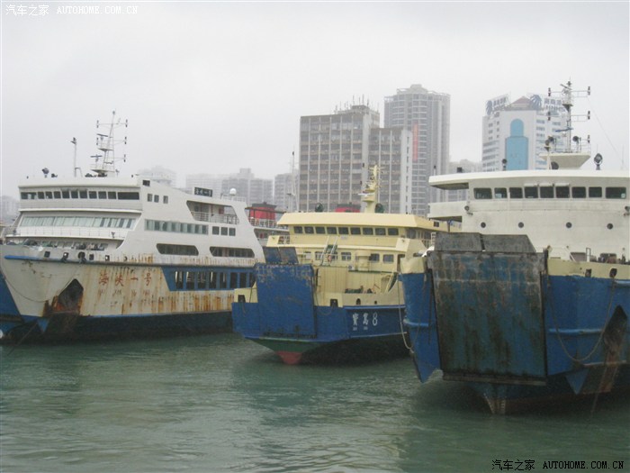 12月2日早上起来准备轮渡,轮渡是24小时开的,除非遇到台风等恶劣天气才会停。在海安街上找了家饭店随便吃点早餐,米粉,装米粉的碗好吓人,在我们这边酒店是盛汤用的那种“鼓”。要两碗16元。吃完后去码头,10:00到达码头,一看前面好多大货车,一看有小车绕到前面去,跟着上,上前一看才知道小车和大车分道进港口的,小车根本不用等。安检工作人员看也没看,直接开了张单就去窗口交费,问了声除了驾驶员还有几人,小孩不用交费。办完拿着单子顺着路牌指引进港口,我开到的单是宝岛16号,后来回来时也还是这艘船。去的时候人不多,只开了一个客仓躺着睡觉的位子都有,可回来时人多,开了两个客仓还都坐满了。10点上的船,等到船装满轮渡的各种车辆后开船时已经11点了,到达秀英港下船时13点了。