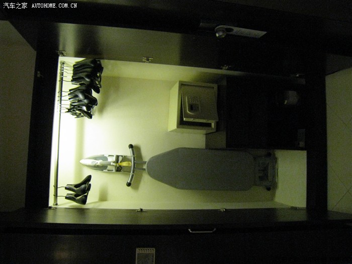 这个也治颈椎,这个是进门处的那个衣柜打开后自动开灯,关门自动关灯。里面有个保险箱,我懒得研究就没用过,还有烫衣板和熨斗。