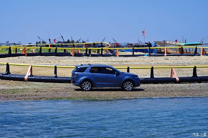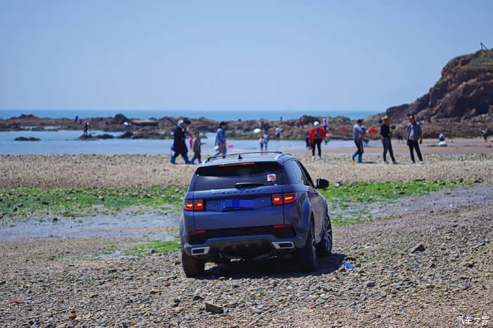 即便是退潮后想要驱车进入牛岛至少需要一辆四驱车,最好带有中央差速器锁。得益于路虎家族引以为傲的第二代全路况反馈系统只要选用沙地模式中央差速器锁便可自动锁止,再配合路虎强大的电子限滑系统,虽然没有前轮差速器锁和后轮差速器锁但应付这种沙滩路面不费吹灰之力的就顺利通过了。一点感觉不到车轮空转。ATRS系统(即蠕行系统)根本无用武之地。