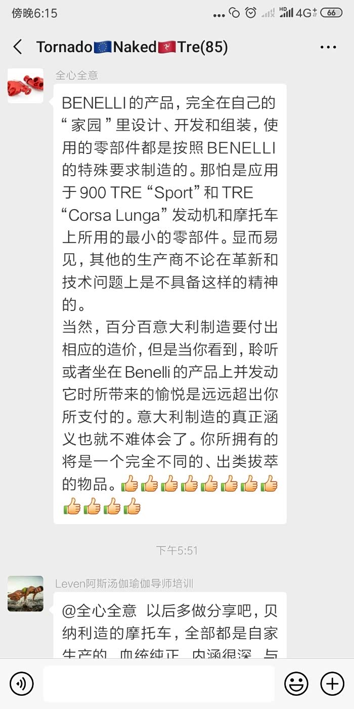 还忽悠群里人,说必须用进口原厂机滤,kn的都不行,必须在他那买,才是真的,我们这边售后师傅都说贝纳利机滤都是通用的,他们还在那瞎说,感觉贝纳利工厂真应该好好管管