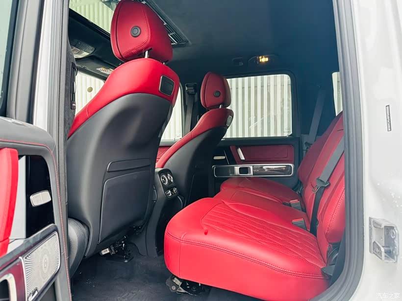 标配:4.0T V8 汽油发动机、雷达测距、360环影、AMG外观套件(AMG包围,AMG运动卡钳,前六后四活塞,AMG运动方向盘、AMG运动轮毂)、几何光束LED灯组、双边四出排气、前排座椅通风加热、后排座椅加热、真皮座椅、三把差速锁、阻尼悬挂、前后雷达、自动泊车、停车辅助、并道辅助、大G专属隐形天窗、麂皮内顶、二排隐私玻璃、柏林之声音响