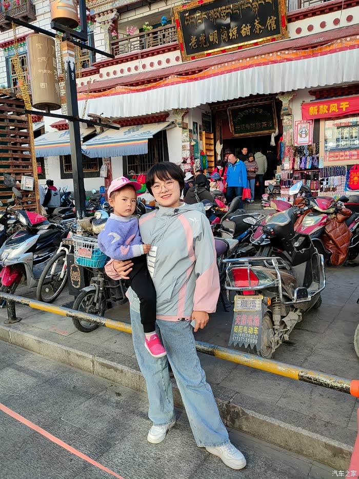 茶馆里几乎找不到空位,不管认识或是不认识,都可以坐在同一桌的长条凳上。我们带着小宝贝,在连人都容不下的空间里,也像在排号一样,在等待位置,就在等位置的时候,一个大姐看到我媳妇还抱着娃,给我们让了个位置,我们也就像当地人一样喝一杯甜茶,吃一碗藏面,同时也很感谢这位当地大姐