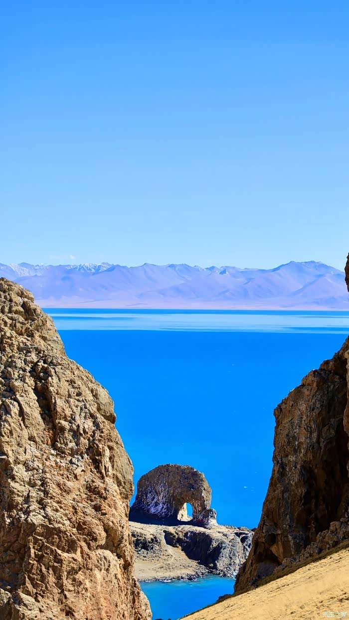 圣象天门,顾名思义。一只天然形成的巨大石象,站立在辽阔的纳木错岸边,象鼻恰恰的深入湖面,仿佛正在汲取这来自雪域的神圣之水。而石象的身体与象鼻之间,就如同一个巨大的门 ,是通往天堂的圣门。作为藏传密宗的一处圣地,千百年来无数的高僧隐士在此清修,现在依旧如此。