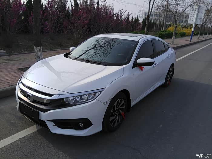 提车好多天了一直想发个作业无奈手机像素渣,拍摄技术菜。但还是觉得不发个作业对不起小思的颜值。闲话不多说了,已经订婚,所以要买个新车结婚用,之前的三菱蓝瑟也没打算卖掉留给老婆练手了。选车确实是个非常纠结的过程。拍死了凌度和速派因为低配配置很低,还担心双离合问题,拍死了17蒙迪欧,因为家里人看了蒙迪欧的内饰做工直接摇头。周末就带着老婆和爸妈去看车,挑来挑去的还是超级纠结,到了东风本田看了看思域思铂睿,思域的气场直接迷倒了家人。真是漂亮。直接拉着销售坐下来谈谈,因为咳咳咳……这个老婆关系硬,销售直接说可以给个1399白色的,当天就能提走。直接高潮了!立马就掏银行卡,但是介于天色已晚提车来不及了,交了定金,明天提车。回到家睡觉也没睡好,第二天早早起床去提车。