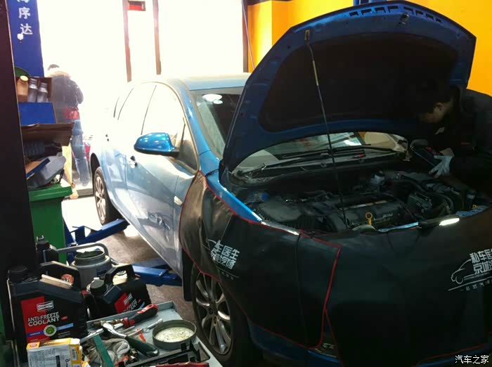 英朗XT,使用地北京,1.6升。车主还有一辆奥迪,使用循环机更换变速箱油后感觉非常好。所以这次把英朗也开过来,使用循环机更换变速箱油。变速箱油使用的是别克原厂变速箱油,换油前用美国原装进口的清洗剂对变速箱进行了彻底清洗。这辆英朗整体车况不错,下面主要上更换变速箱油图片。英朗进入车间,技师在补防冻液。自动变速箱循环换油机和变速箱油,用的是通用的原厂变速箱油。技师在安装管线,让变速箱的散热油路与循环换油机的管路连接起来。来张尾部图片。加变速箱油细节图。油用的是通用别克原厂变速箱油再来一张。美国原装进口的变速箱油清洗剂,BG106,清洗效果非常好。清洗剂加入后,变速箱和换油机的小循环连接,清洗剂进入...