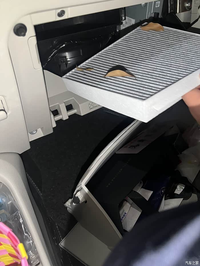 2、松开固定螺丝或卡扣,取出旧空气滤清器(看个人情况是否需要更换,我是有一天打开空调的时候那异味简直绝了....不知道有没有欧拉好猫车主也会经常觉得空调总有一股异味,简直想吐.....)