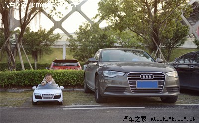 ↗ 先上一张与A6的对比图,从上图可以看出,R8的跑车范十足,低矮运动!