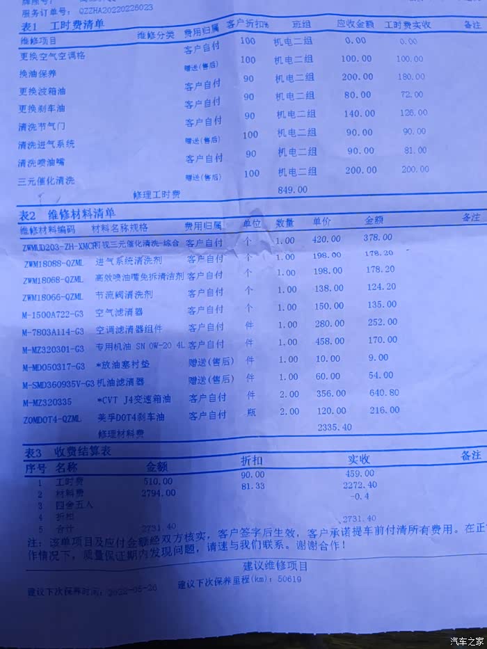 节气门及进气系统、喷油件、三元催化清洗 954(实付858)人工520(实付207)