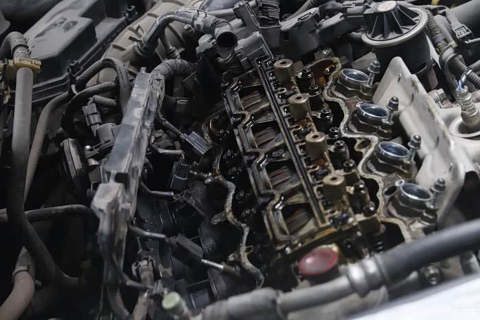 在一个是上图的气门罩盖垫老化导致。更换后问题得到了解决。这个其实在老车当中,算不上什么大的问题,正常磨损吧!也属于易损范围。