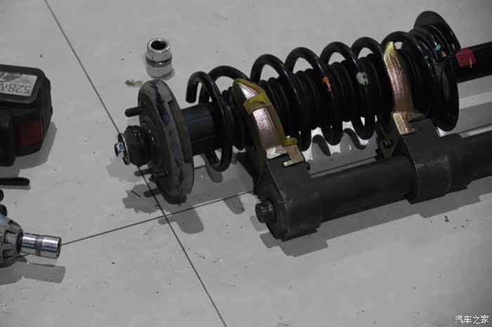 拆卸已经漏油的减震器,这个过程可马虎不得,安全生产永远是工作的核心。