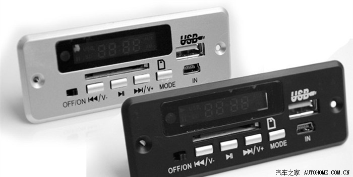改装方式有两种:1、直接使用现有的MP3解码模块在车是挖孔安装。2、将MP3解码模块放入档位箱内,用电线把