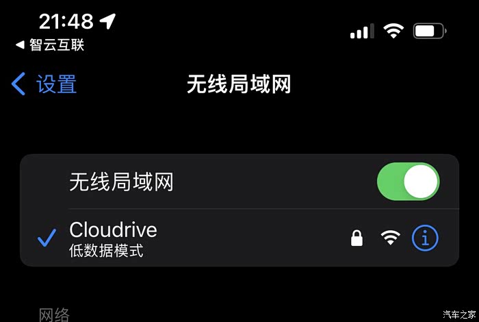 3、手机无线局域网选择“忽略此网络”,车机显示使用数据流量。