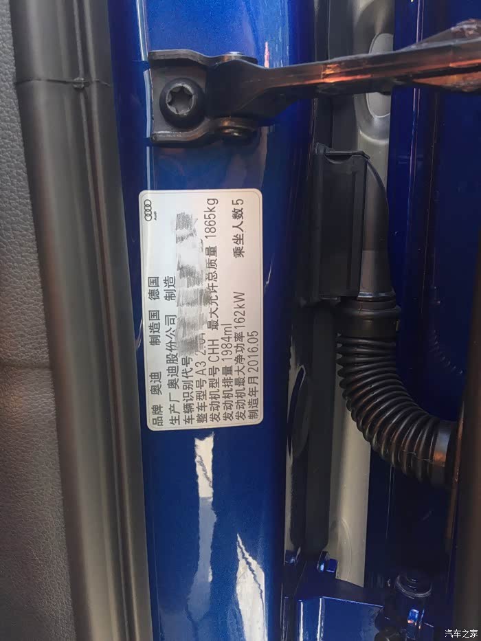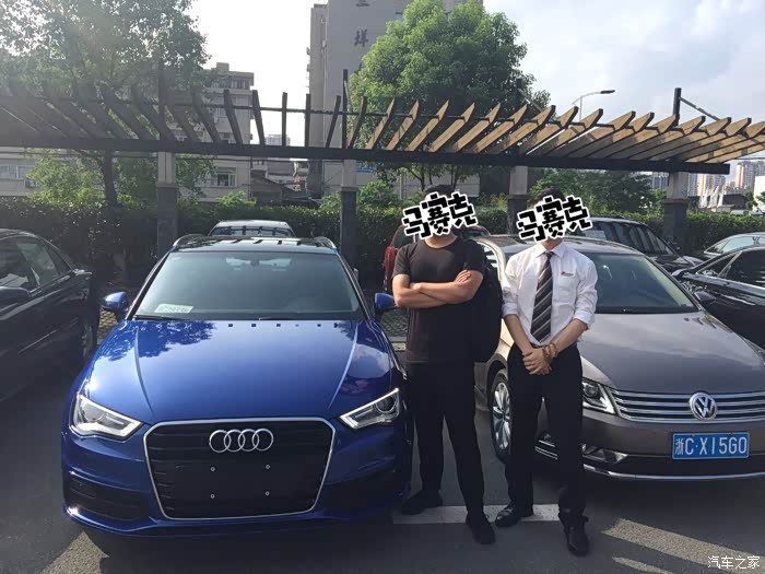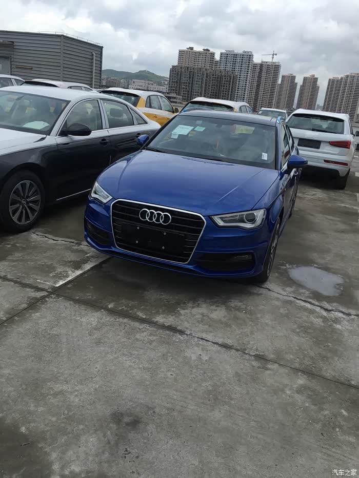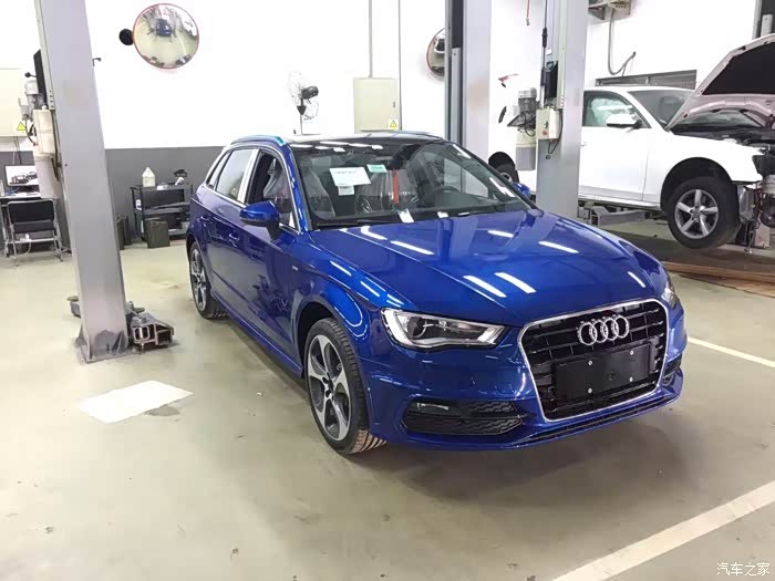(四)购车过程:这颜色实在太少,找了很多店都没有,一开始在一家店交了订金,等了快两月,被告知店里没有进口A3的指标,无法向厂家下订单,港口也一直拿不到车子,无奈只好继续寻找,最终在温州找到一个雪邦蓝的订单,立马杀到交了订金,等了一个月左右(购车前后一共等了三个月)车子终于到了,而且是原厂定制加装的,原车(29.98)+LED氛围灯(0.28)+智能钥匙(0.57)+防盗报警(0.59),整车优惠完最后落地28左右,完全在预算范围之内。
