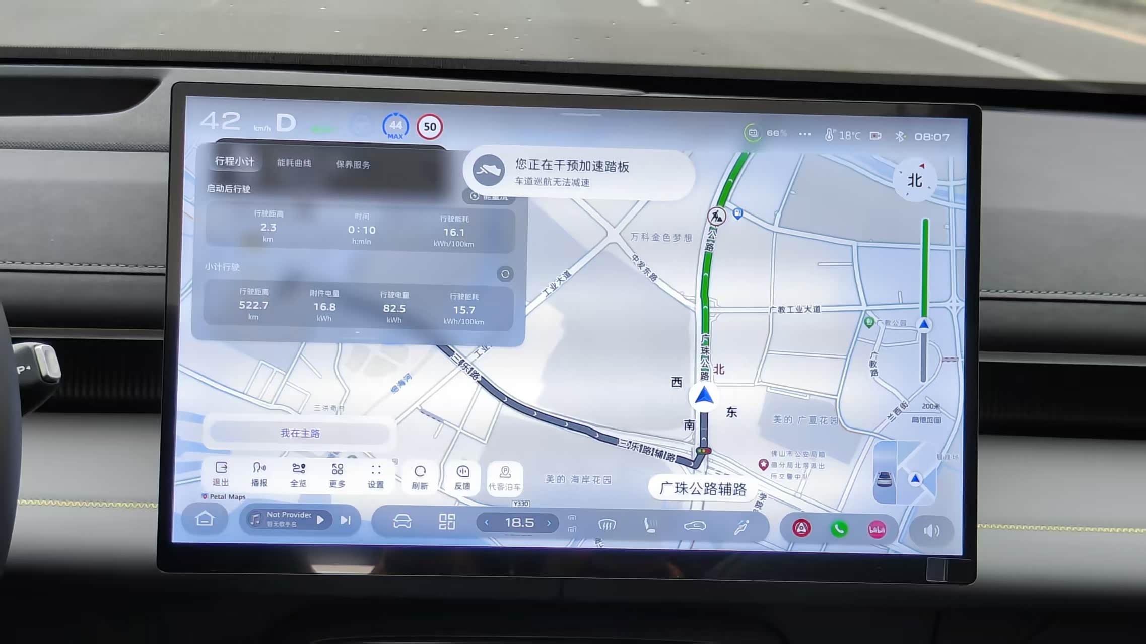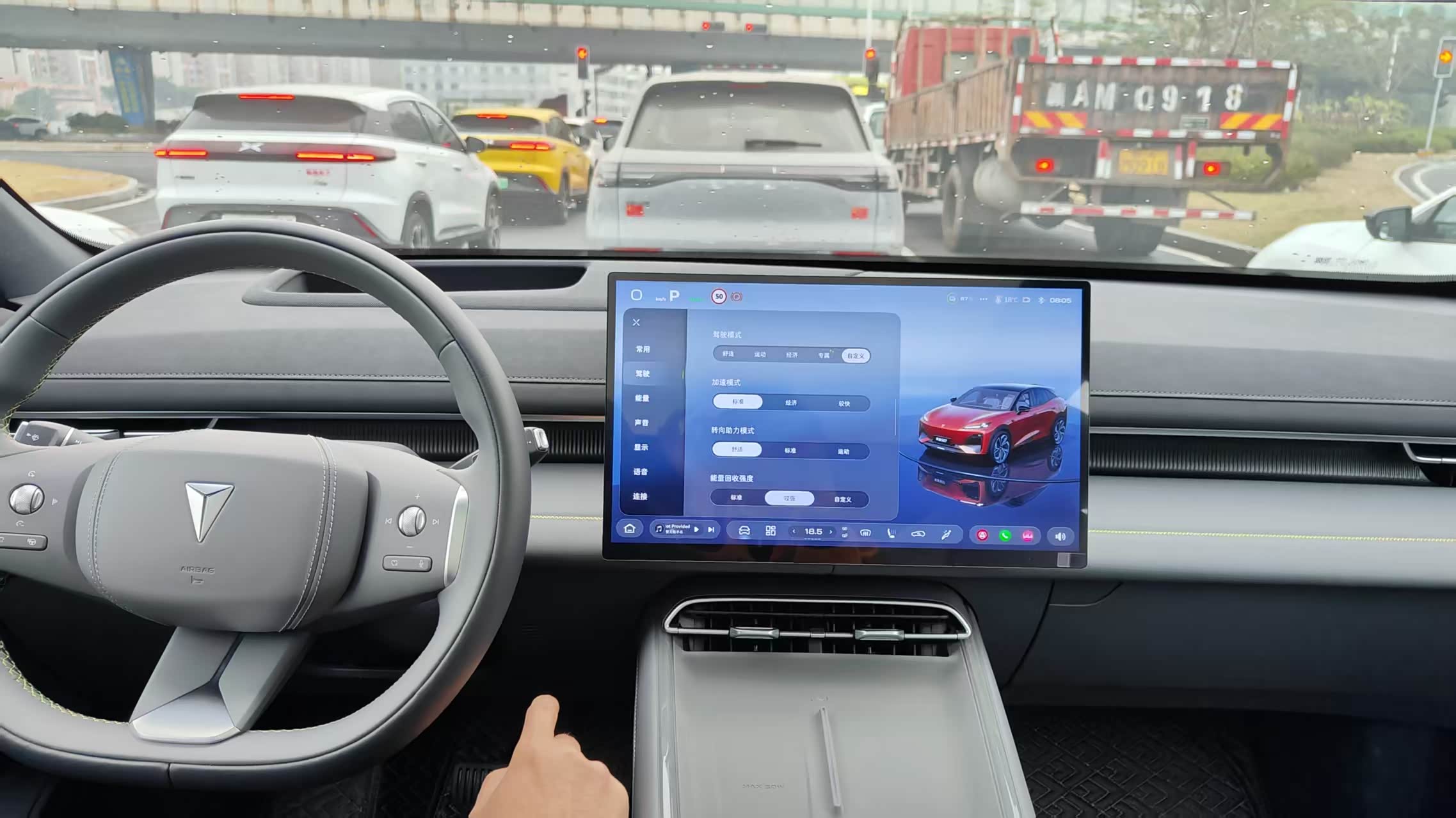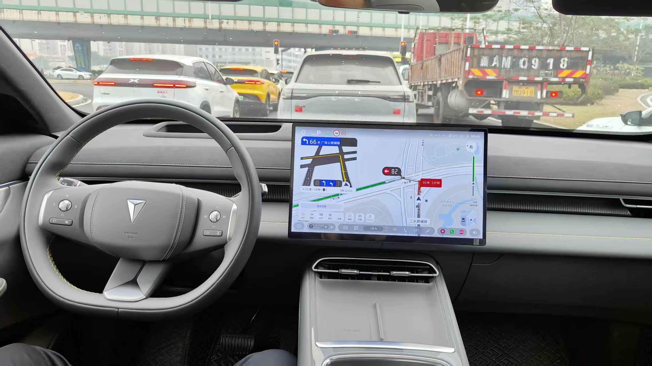 车里的智能化配置也很方便。S07设计了一个HUD抬头显示,将车速和简单导航信息投射在前挡玻璃,我不用老低头看仪表盘,开车时眼睛能一直看着前面。而且这个“抬头显示”的位置也可以调,不同身高的司机可以根据自己的需求进行调节。车内语音控制也很有趣,开关空调、调温度、开车窗,说句话就行。我试过用粤语和它交流,它能听懂,但回答还是普通话,方言的功能要是能再完善一些就更好了。