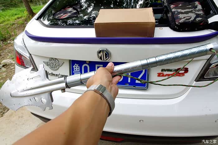那就是放在车内防身,此工兵铲防身效果一流,尺寸大小都很合适,铲头用铲包保护,最短长度放在驾驶座下面不碍事。
